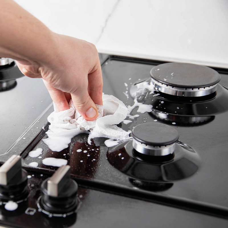 Não é necessário enxaguar. Para superfícies com sujidades/nódoas difíceis de remover, deixe o EcoClean actuar durante um período de tempo maior, limpando depois a superfície com um pano limpo. No caso de permanecer vestígios repita o